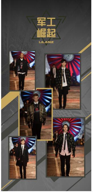 具有捍衛(wèi)精神的軍工,賦予世界源源不斷的能量。以“軍工科技”為主題的系列服裝,以神秘黑,經(jīng)典軍綠為主調(diào),熱忱紅、金屬質(zhì)感的黃色加以點綴,服裝中巧妙運用金屬科技質(zhì)感的五角星、軍事迷彩、軍事科技、軍事徽章、軍事武器、大頭兵像、舊海報等剪影為元素展開一系列大膽的設計,款式結(jié)合軍大衣、飛行員茄克的設計風格,極具個性、潮流。“每一個向死而行的生命都在熱烈的生長”,這就是利郎“軍工科技”系列捍衛(wèi)的正義、無畏精神。