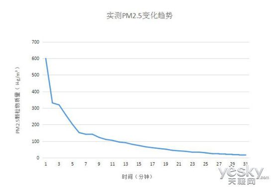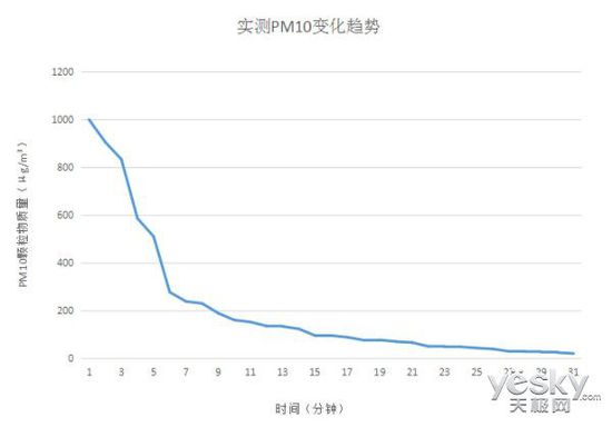 從表格中我們可以看出,在開啟三星KJ400F-K5586WF空氣凈化器18分鐘左右,PM2.5顆粒質(zhì)量降至50μg/m3左右,在30分鐘之后已經(jīng)可以達到15μg/m3,凈化效果較高。與此同時,PM10顆粒質(zhì)量在開啟凈化器21分鐘后,數(shù)值降至49μg/m3,在30分鐘時,數(shù)值小于20μg/m3,速度相當之快。在監(jiān)測過程中,產(chǎn)品顯示面板的指數(shù)以及指示燈會隨著感應(yīng)數(shù)據(jù)發(fā)生變化,反應(yīng)靈敏,準確性較高。