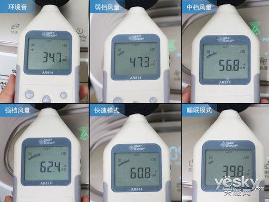 可以看出產(chǎn)品在睡眠模式下幾乎不會產(chǎn)生工作噪音,而強風(fēng)檔及快速模式下,噪音也在60dB左右,幾乎不會影響人們?nèi)粘I睿驍_用戶作息,在噪音環(huán)節(jié)表現(xiàn)值得肯定。