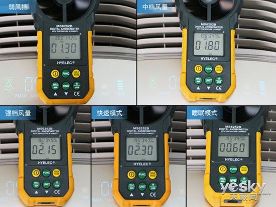 我們測得,在快速模式下,凈化器上出風(fēng)口出風(fēng)速度為2.3m/s,強風(fēng)檔風(fēng)量為2.15m/s,而在睡眠模式下,產(chǎn)品的出風(fēng)口風(fēng)速僅為0.6m/s,用戶可以根據(jù)屋內(nèi)的污染程度和自身需要選擇不同的風(fēng)擋,區(qū)分度較高。