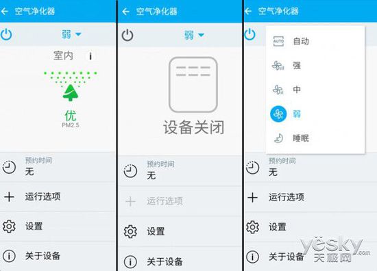 另外,我們還可以觀察到,在顯示面板中,有自動、強、中、弱四種風(fēng)量,以及快速和睡眠兩種情景模式可選擇,每一種工作狀態(tài)對應(yīng)了不同的凈化強度。