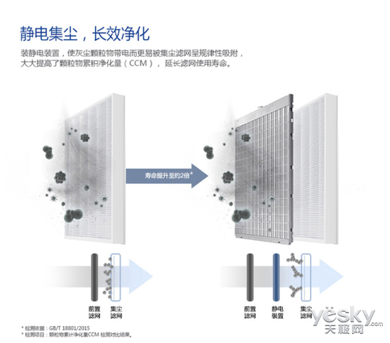 經(jīng)過拆解我們可以看出,相比于其他產(chǎn)品,這款三星空氣凈化器的前置濾網(wǎng)和一體型濾網(wǎng)中間,安裝了靜電裝置,在工作中可令顆粒物帶電,規(guī)則地吸附在濾網(wǎng)纖維上。