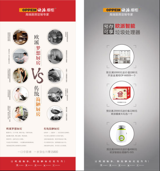 三月伊始,歐派櫥柜在營銷推廣上更加大力度,“拜拜!簡陋廚房”促銷活動從3月1日至25日,全國歐派櫥柜商場同步進行,該活動以特惠價格推出廚房全配套餐,優(yōu)惠價格促銷高品質(zhì)、高科技現(xiàn)代化廚電,一步打造全能高配的智能廚房。為了回饋新老客戶,歐派櫥柜將會送出多重感恩大禮(詳情請留意本地歐派專門店)。