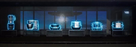 現(xiàn)場沒有濃煙明火,還可以暢快開腦洞,全息投影直觀地展示了美的小家電產(chǎn)品烹制一日三餐,制作創(chuàng)意美食的場景,讓智能廚房觸手可及,放飛人們的食欲。