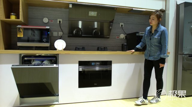 剛剛體驗小美的時候,極果君同時也體驗到了這套美的廚電設備,包括洗碗機、烤箱、煙機等等一系列產品。