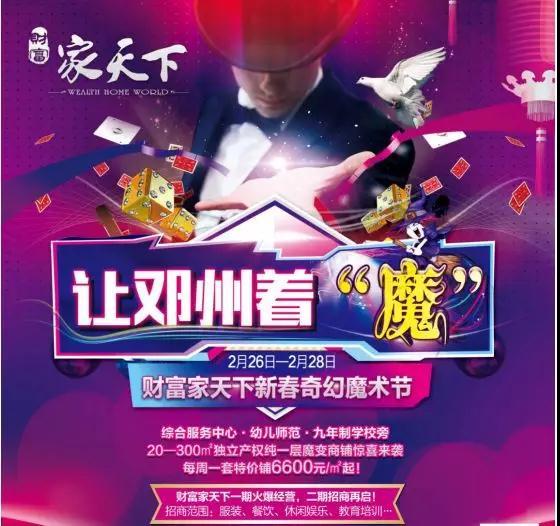 2月26日 —2月28日 ,財富家天下奇幻魔術(shù)節(jié)精彩綻放!曾登陸央視及各大衛(wèi)視的表演嘉賓劉文軍團隊,空降鄧州,帶給你不一樣的視覺盛宴!
