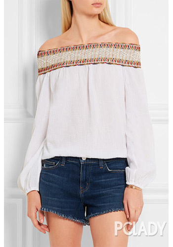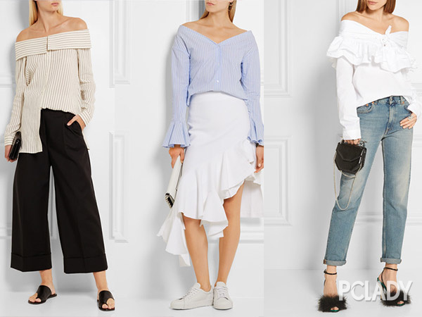 一字領(lǐng)可以性感,可以誘惑,但這絕對(duì)不是它的全部。與性感女人味恰巧相反的寬松休閑風(fēng),它信手拈來,亦能輕松演繹。藍(lán)白條紋,清爽自然。