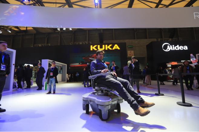 另外一個(gè)看點(diǎn)對于美的把機(jī)器人引入家用領(lǐng)域的嘗試。在現(xiàn)場,美的智能輪椅機(jī)器人(圖5)展示了為身體活動不便人士提供移動協(xié)助的可能,通過身體姿勢輕微動作,就可以驅(qū)動輪椅機(jī)器人,在家中自由移動,這樣的應(yīng)用,無疑為解決日趨嚴(yán)重的老齡化問題提供了巨大的幫助,也讓人感受到美的利用“人機(jī)共協(xié)”將智慧家居升級為智慧家庭的成長空間。