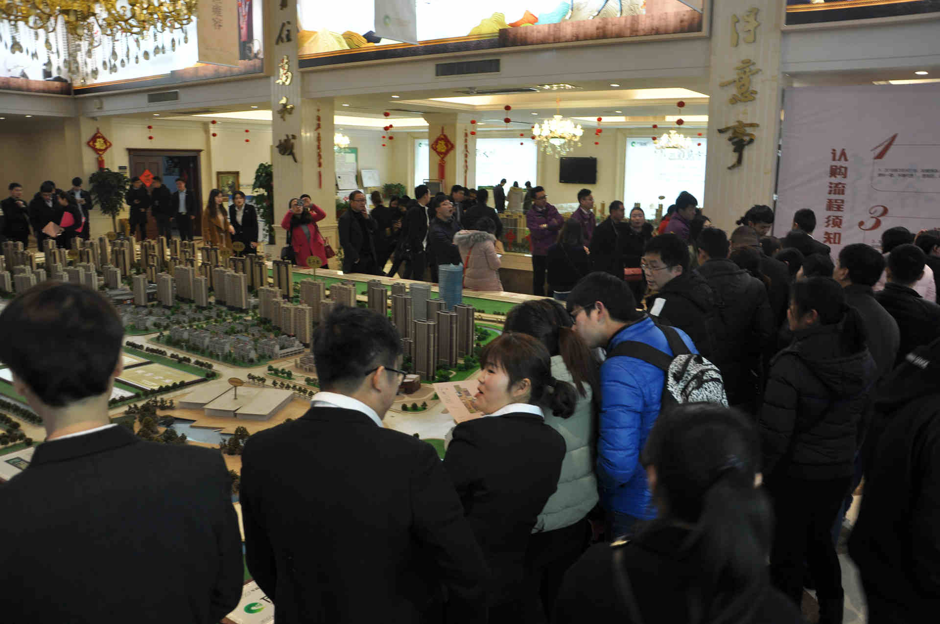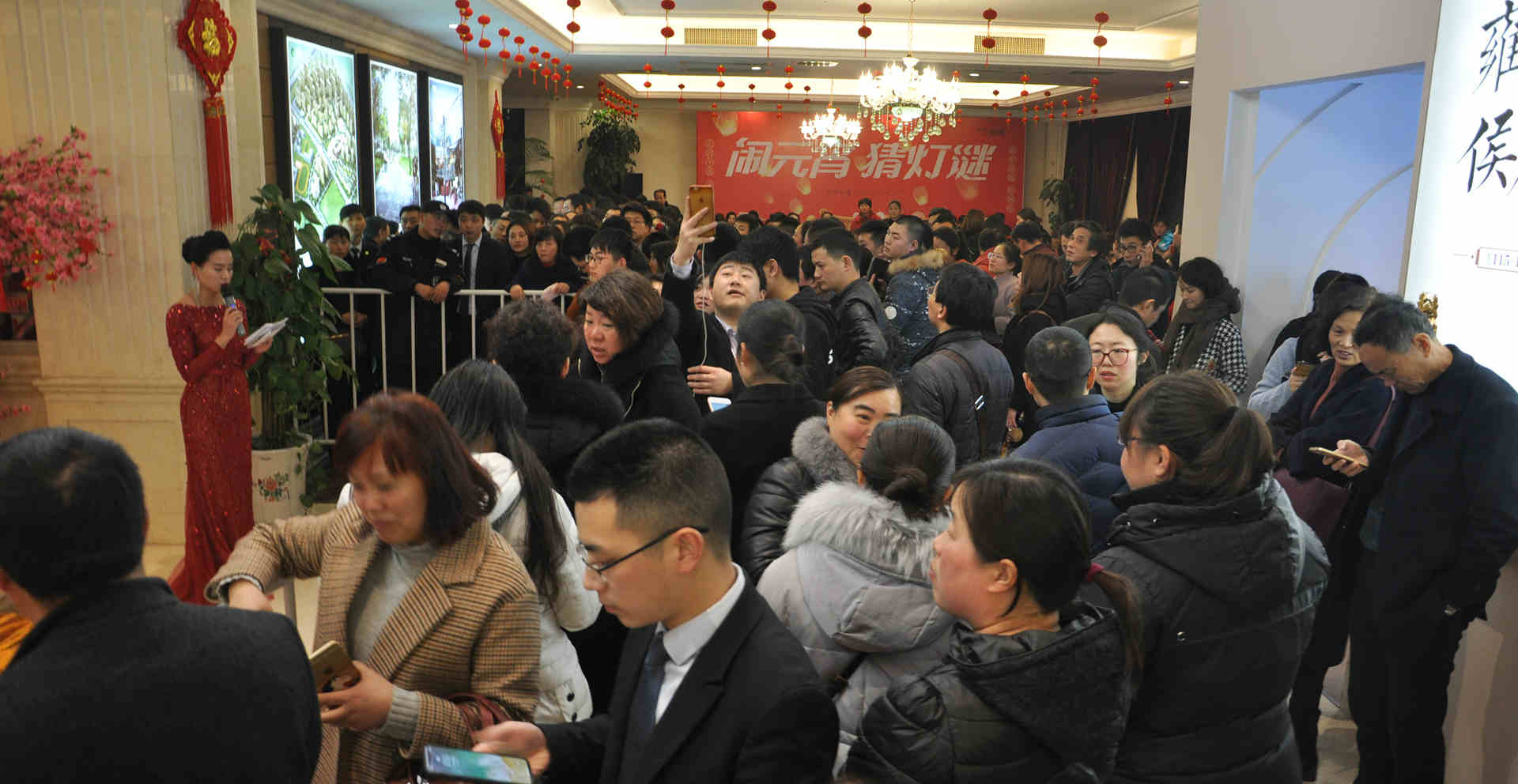 不到6點半,數(shù)百購房者已經(jīng)早早趕到售樓處參與搶房了,現(xiàn)場人山人海,熱鬧的氛圍將夜幕的寒意阻擋在外,每一個人的臉上都滿是期待和喜悅,彼此談?wù)撝约盒膬x的房源和對未來家庭的構(gòu)想。