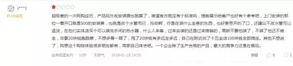 一們名叫s***2的網(wǎng)友表示,安裝另外收費(fèi)也就算了,改個(gè)水管“開口就要500的安裝費(fèi)”,不讓裝了還“非要20塊錢跑路費(fèi)”,最后“在附近隨便找了個(gè)五金店100塊全部搞定”。100塊能夠購(gòu)買到的材料,在商家這卻足足多了四倍。