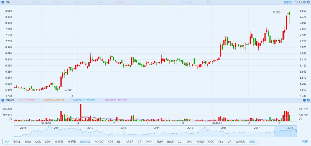 自業(yè)績公布后,公司的股價連續(xù)上漲,至3月12日,漲幅合計15%,報8.47港元,總市值101億元。