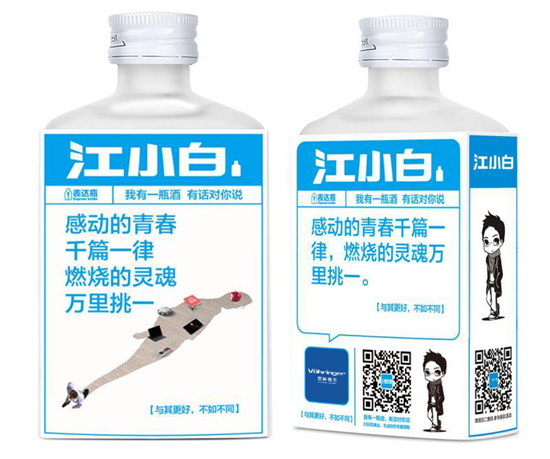和所有人一樣,極客也需要被理解,被表達(dá)。江小白看到了這一點(diǎn),于是他將酒瓶瓶身做成了彰顯個(gè)性的媒體:——那些火遍大江南北的酒瓶文案在旁人眼里只是創(chuàng)意,在極客眼中是召喚同類的“氣息代碼”,他們通過此辨識(shí)彼此。