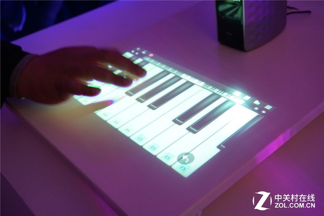 \u00A0\u00A0\u00A0\u00A0\u00A0\u00A0\u00A0\u00A0這款海爾投影觸摸交互音箱可以說是最讓大家驚喜的一款新品。這款音箱將投影、觸控、聲音播放結(jié)合起來,將屏幕投到面前的桌上,用戶可通過觸摸虛擬屏幕進行操控,還可控制其他網(wǎng)器。現(xiàn)場觀眾紛紛體驗用它彈鋼琴。
