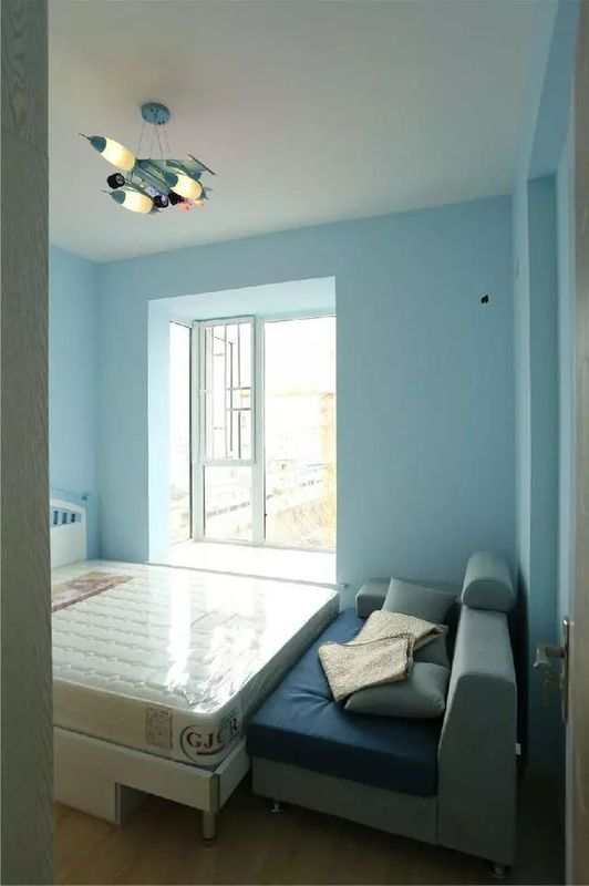 藍(lán)色的兒童房,還裝了飛機(jī)燈,兒子表示很喜歡!