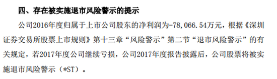 論其為何如此斷臂求生,我們可從其2017年業(yè)績快報中看出端倪。2018年2月28日,公司發(fā)布了《2017年度業(yè)績快報及存在被實施退市風(fēng)險警示的公告》。公告顯示,因競爭激烈導(dǎo)致銷售未達預(yù)期、公司產(chǎn)品合同虧損、產(chǎn)品到期報廢致使存貨核銷較原預(yù)期增加、應(yīng)收賬款回款未達預(yù)期等原因,報告期內(nèi)公司實現(xiàn)營業(yè)總收入264,672.57萬元,較上年同期減少11,777.15萬元,計4.26%;利潤總額-95,148.02萬元,較上年同期減少32,782.59萬元,計52.57%;歸屬于上市公司股東的凈利潤-96,368.99萬元,較上年同期減少18,302.45萬元,計23.44%;基本每股收益為-0.94元,較上年同期減少0.18元/股,計23.68%。且因虧損嚴(yán)重,公司已存退市風(fēng)險,被深交所問詢。