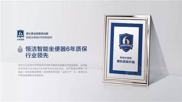 \u00A0\u00A0\u00A0 正是這句看似平常的「智能坐便器 6 年質(zhì)保」的承諾,將恒潔崇尚的「將心比心、以心換心」落到實處,也讓消費者可以在長達6年的時間里一直感受到恒潔的關(guān)愛守護。「智能坐便器6年質(zhì)保」不僅重新定義了中國智能衛(wèi)浴行業(yè)的服務(wù)標準和模式,也將原本冷冰冰的服務(wù)條款和文字承諾,變成了一個個感人的舉措和溫情的依托。