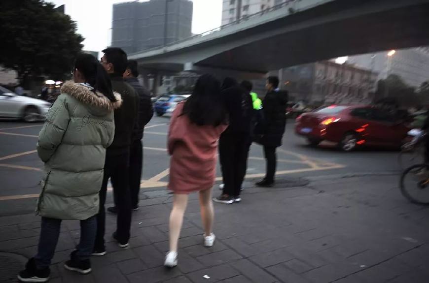 重慶,沙坪壩站。穿短褲的女生和周圍的人形成鮮明的對(duì)比。 白杉|攝
