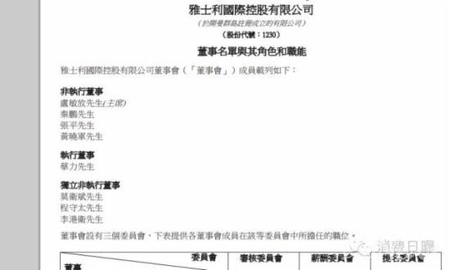 8月25日,雅士利公告,雅士利執(zhí)行董事兼副總裁李東明辭職,雅士利董事會(huì)委任華力為執(zhí)行董事兼分管營(yíng)銷的副總裁。