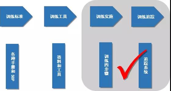 部分企業(yè)往往只重視標(biāo)準(zhǔn)與資料工具的建設(shè),卻忽視了訓(xùn)練的過程管理,也就是由上圖中劃勾的最后兩項(xiàng)構(gòu)成。