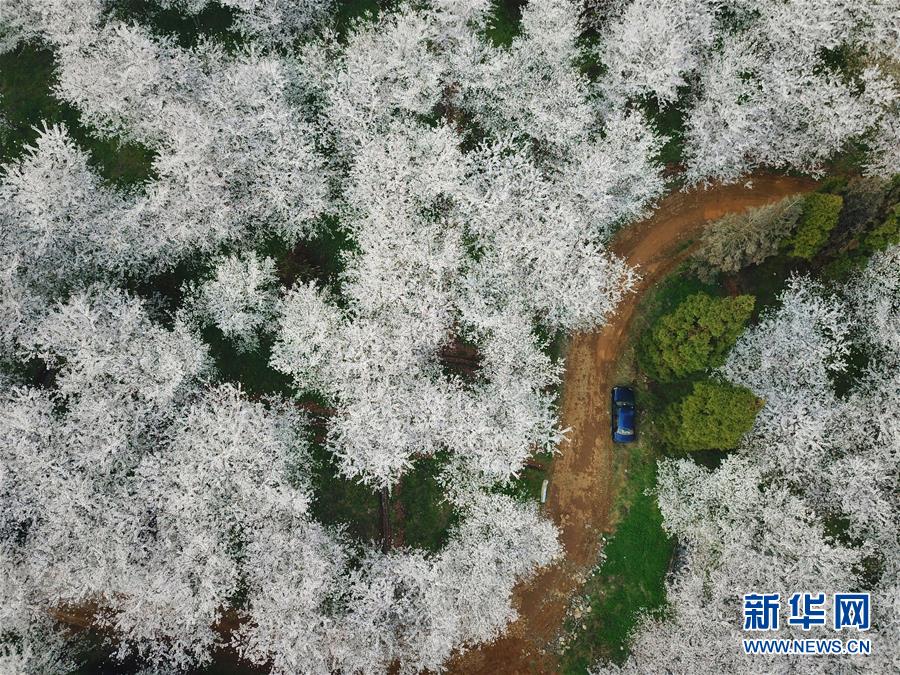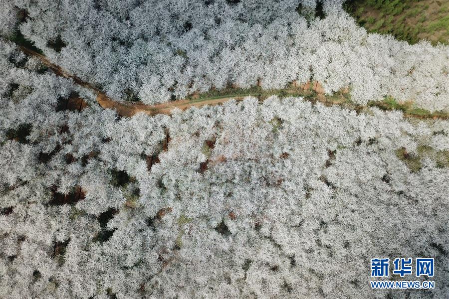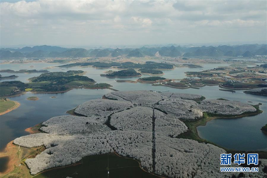 這是航拍的貴州省貴安新區(qū)櫻花園(無人機3月14日拍攝)。近日,貴州省貴安新區(qū)紅楓湖畔萬畝櫻花觀光園內(nèi)櫻花盛開,吸引大批市民和游客前來觀花賞景。 新華社記者 歐東衢 攝
