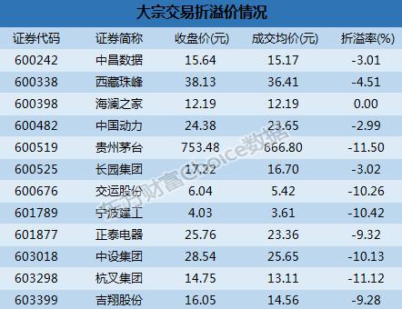 滬市大宗解讀:西藏珠峰2.55億成交 貴州茅臺11.5%折價成交
