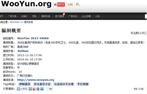 此外,屈臣氏也被頻繁爆出價格欺詐。今年8月,杭州屈臣氏太平里分店銷售麥兜造型手機包,商品標價為8.9元/個,實際結算價格金額為10.9元/個,上了“低標高結”的懲罰黑榜,屈臣氏也因此被罰2萬元。這些財大氣粗又劣跡斑斑的企業(yè),今年都有可能成為央視廣告標王。此外,去年“標王”360今年依舊危機重重、不能幸免。今年年初,權威漏洞報告平臺烏云再次曝出奇虎360重大安全漏洞問題。該漏洞可以導致任意用戶登錄密碼被修改,隨之可登錄360手機衛(wèi)士、360云盤、360瀏覽器云同步,進而完全獲取任意用戶備份在云空間的通訊錄、短信、通話記錄等。據(jù)烏云截圖顯示,知名女星苗圃的通訊錄、瀏覽器收藏夾、短信、電話簿等內(nèi)容完全泄露。而去年嘗到甜頭的360,今年很有可能故技重施,再次蟬聯(lián)標王也不是沒可能。