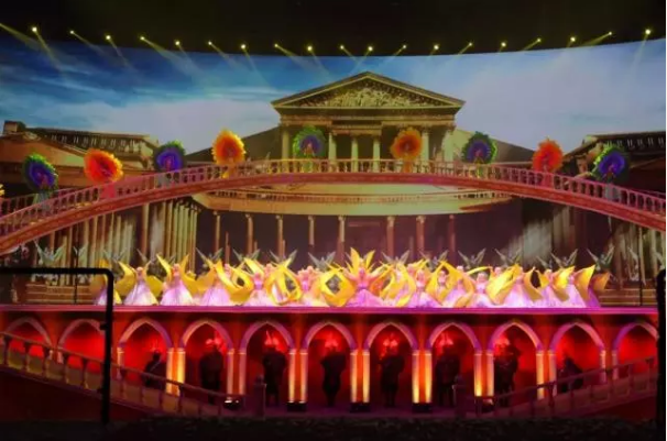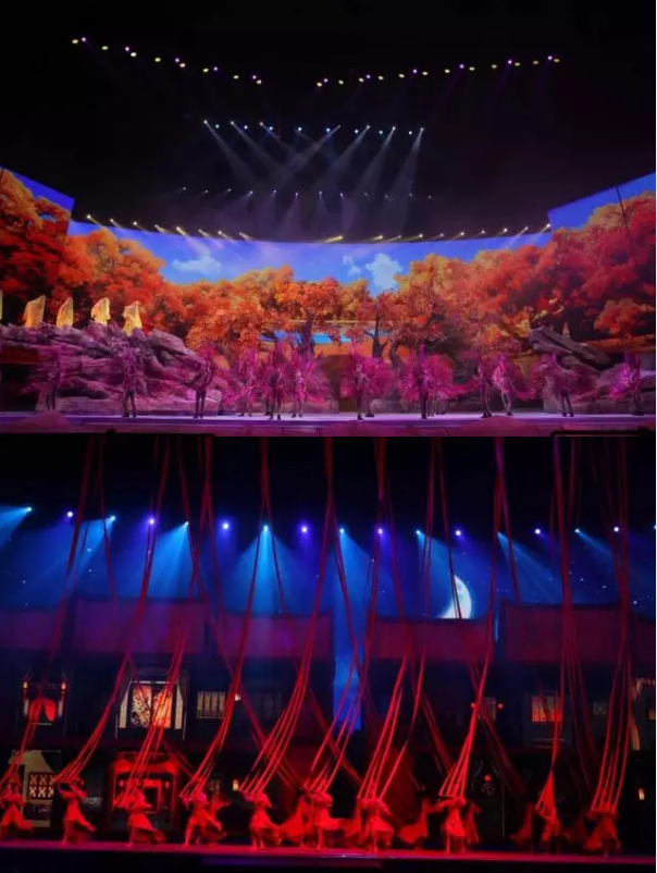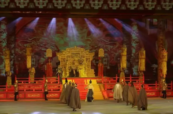 整場(chǎng)演藝分為序幕《歲月再現(xiàn)》及《送君千里》《狼道遇險(xiǎn)》《異國風(fēng)情》《祥雨洗塵》《迎郎歸來》《華夏盛世》七幕劇情。
