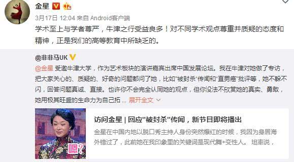3月17日金星回應(yīng)“被封殺”傳聞