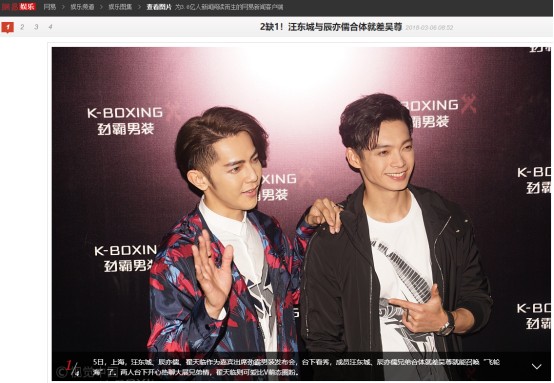值得一提的是,作為到場嘉賓的汪東城與辰亦儒同時(shí)曾為團(tuán)體“飛輪海”的成員,此次做為K-BOXING勁霸男裝#茄克?時(shí)空之旅#的應(yīng)邀嘉賓同時(shí)出席,也成為了時(shí)尚娛樂視頻媒體如騰訊娛樂、愛奇藝、優(yōu)酷時(shí)尚、新浪娛樂、搜狐娛樂、樂視視頻等媒體爭相報(bào)道的話題。