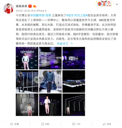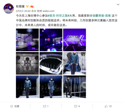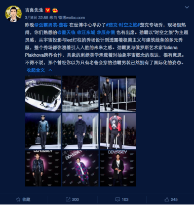 時(shí)裝評(píng)論人、作家、微博時(shí)尚達(dá)人吉良先生對(duì)此次活動(dòng)給予了高度評(píng)價(jià),并闡述了對(duì)跨界合作單品的好感。