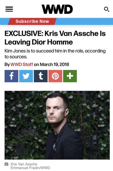本周,時尚圈最大的設(shè)計師交替事件來自于Dior Homme,根據(jù)權(quán)威時尚媒體《WWD》報道,任職于Dior Homme11年的設(shè)計師Kris Van Assche確認離開。十分鐘后前LV男裝創(chuàng)意總監(jiān)接棒Dior Homme。