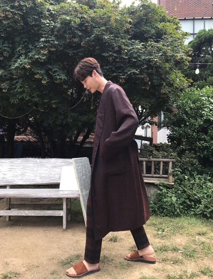 9月22日,李鐘碩在微博上曬出一組自拍,他身穿長(zhǎng)款風(fēng)衣和拖鞋,悠閑漫步。