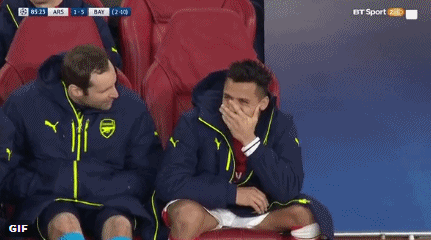 動圖丨阿森納歐冠悲慘出局 桑切斯替補席詭異大笑