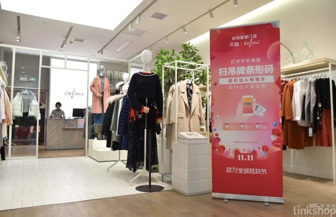 2017年是伊芙麗第七次參與雙11,是線上線下打通全渠道的第二年,今年更多新零售的方式,讓品牌與銷售者在先上線下都玩在一起:除了1500家門店參與拍立淘活動,500余家門店參與全渠道發(fā)貨,今年150家門店“換上了”隨身購物袋的形象,完美解決了顧客在門店試穿體驗時,缺色少碼的窘境。5家智慧門店,會員碼支付,立享雙11優(yōu)惠券。