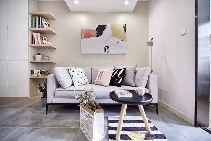 以白色為基色,搭配灰色、白色,非常經(jīng)典的北歐風(fēng)搭配,簡(jiǎn)潔明了,小戶(hù)型使用淺色調(diào)進(jìn)行裝飾,整體看起來(lái)較開(kāi)闊。