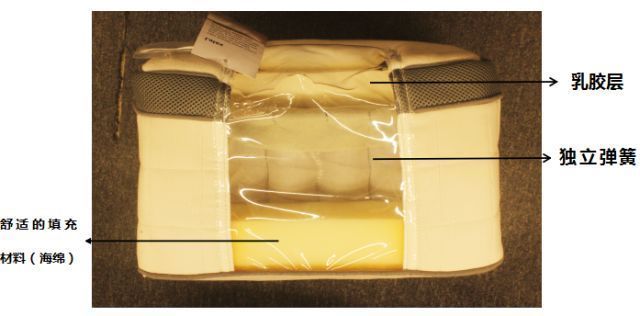 中間的彈簧層是獨(dú)立包裝的,相比整體彈簧可以提供更舒適的支撐感受。