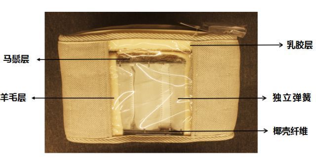 第二層的馬鬃層以及底層的椰殼纖維都是使得整個(gè)床墊透氣性更好,在表層棉下面還有看起來(lái)很薄的一層羊毛,起到恒溫保暖的作用。