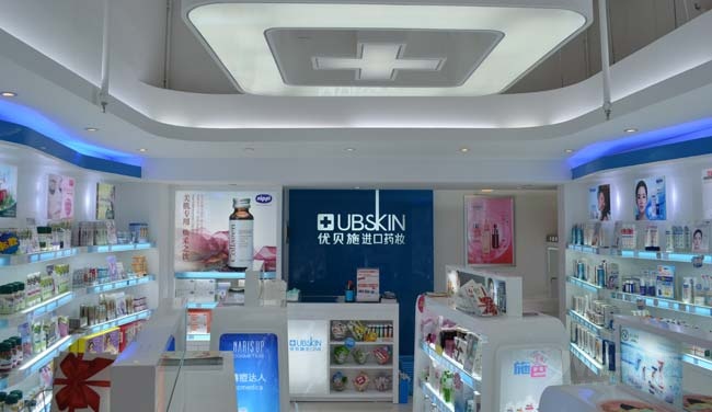 ① 優(yōu)貝施店鋪形象由法國專業(yè)公司設(shè)計公司,以溫和清新的藍(lán)色&白色為總體基調(diào),輔以活躍靈動的玫紅,盡顯國際化藥妝店氣息