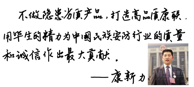 3、 榮譽——康聯(lián)董事長康新力本人多次被評為共和國經(jīng)濟建設功勛人物、全國安全防范報警系統(tǒng)標準化技術(shù)委員會委員等等。