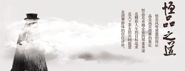 恒品之道 恒是風(fēng)骨質(zhì)量的保證 品是高貴清雅的象征 恒品是卓越企業(yè)的鄭重承諾,是精彩人生的目標(biāo)追求 是天下茶友的共同愿望 是消費(fèi)群體的信任評價。