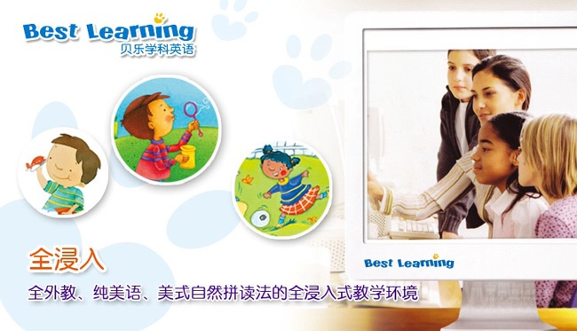 貝樂學科英語教給孩子的是全球較為流行的美式英語,并采用自然拼讀教學法教給孩子發(fā)音規(guī)則,達到“看字讀音、聽音拼字”的教學目標;為了保證孩子純美的發(fā)音,貝樂采用全外教、美國電子課件教學形式,給孩子創(chuàng)造一個完美的國內(nèi)前沿的美語教學環(huán)境。