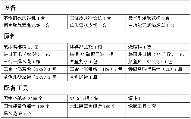 (1) 一次性免費提供整套設(shè)備、服裝和原料;