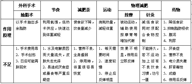 現(xiàn)有減肥方式: