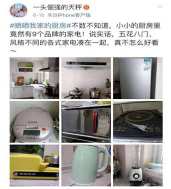 此前,由知名美食博主@美食日志發(fā)起的“曬曬我家的廚房”交互活動在網(wǎng)絡上走紅,有網(wǎng)友通過廚房分享一家人的幸福,也有網(wǎng)友曬出了堆滿各類廚電的廚房,順便吐槽了廚房的雜亂,挑選廚電的麻煩,引發(fā)網(wǎng)友共鳴。如何才能讓廚電風格統(tǒng)一,打造整潔美觀的廚房呢?廚電多品牌拼湊,廚房風格難統(tǒng)一在網(wǎng)友@一頭倔強的天秤曬出的廚房照片中,遠遠望去還算井然有序,但細看一下就會發(fā)現(xiàn),這間廚房里集中了A品牌的黑色吸油煙機、B品牌的黃...