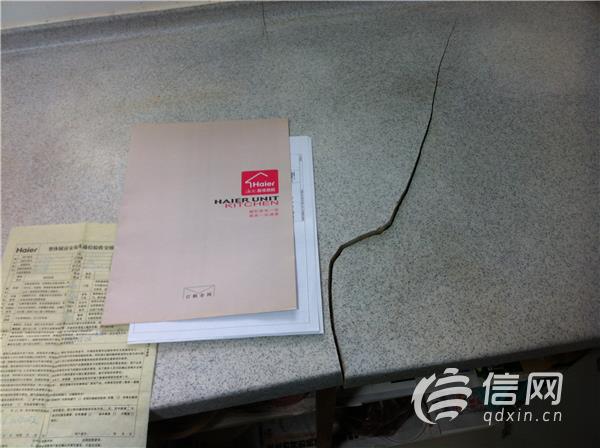海爾櫥柜臺面裂成兩半 因安裝時使用劣質(zhì)板材