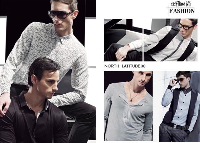 NORTH LATITUDE 30產(chǎn)品主線以黑、白、灰為主色調(diào),詮釋智慧、淡定、品味的人生狀態(tài)。深得25-40歲擁有時尚年輕心態(tài)男士的青睞和賞識。