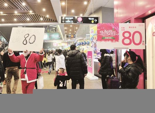 楚天都市報(bào)訊圖為:光谷步行街不少商家打出購(gòu)物打折的廣告楚天都市報(bào)記者李輝攝楚天都市報(bào)記者陳珂陳希張?jiān)|S永進(jìn)統(tǒng)籌:楚天都市報(bào)記者朱澤商家的圣誕節(jié)促銷自上周開啟后,購(gòu)買力被分散,平安夜記者發(fā)現(xiàn),市民們?cè)诔院韧鏄飞匣ǖ墓Ψ虮葥屬?gòu)更多。昨晚,記者在武廣商圈探訪發(fā)現(xiàn),雖然購(gòu)物區(qū)域人流量明顯比平日增加不少,但難敵餐飲、KTV、電影院的“人氣爆棚”。記者一走進(jìn)武廣一樓,滿眼都是人。記者隨后進(jìn)入2-6樓區(qū)域,發(fā)現(xiàn)...