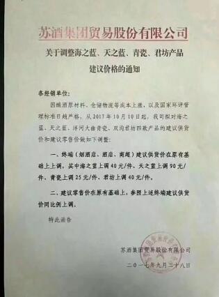 (原標(biāo)題:瀘州老窖老字號(hào)特曲每瓶漲20元)本報(bào)訊(記者\(yùn)u00A0\u00A0趙新培)昨天,白酒市場(chǎng)傳出消息稱(chēng),瀘州老窖再次上調(diào)產(chǎn)品價(jià)格。這是國(guó)慶節(jié)后該公司第二次上漲產(chǎn)品價(jià)格。此前,瀘州老窖旗下國(guó)窖1573及特曲60版雙雙提價(jià)。其中,國(guó)窖1573的零售價(jià)提升至969元/瓶,與五糧液的超級(jí)單品“普五”零售價(jià)一致。日前,一份瀘州老窖特曲酒類(lèi)銷(xiāo)售股份有限公司《關(guān)于執(zhí)行老字號(hào)特曲消費(fèi)者團(tuán)購(gòu)成交指導(dǎo)價(jià)格的通...