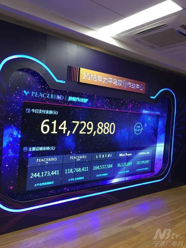 定了,614,729,880!這一串數(shù)字是寧波2016年雙十一作戰(zhàn)中心大屏幕上顯示的數(shù)據(jù),令人驚嘆。和去年天貓雙十一活動單日3.83億銷售額相比足足增長了60.57%!全國人民剁起手來連吉尼害怕,去年雙11打破9項吉尼斯世界紀錄,本月7日,吉尼斯世界紀錄宣布天貓雙11挑戰(zhàn)“24小時微博上提及最多的活動名稱”吉尼斯世界紀錄稱號。今年天貓雙11購物狂歡節(jié)全天總交易額達到1207.49億,遠超去年的91...