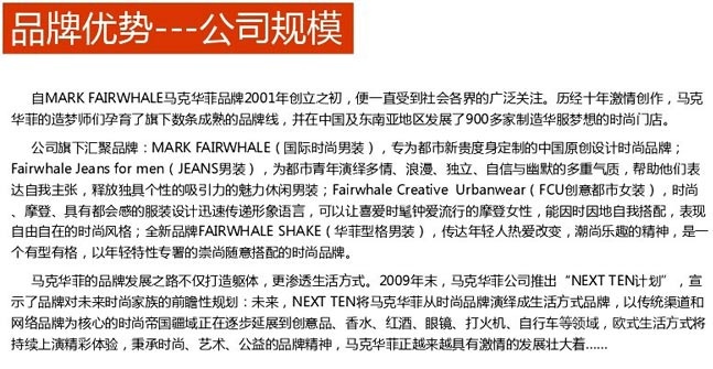 關(guān)于FAIRWHALE JEANS 2011發(fā)展戰(zhàn)略